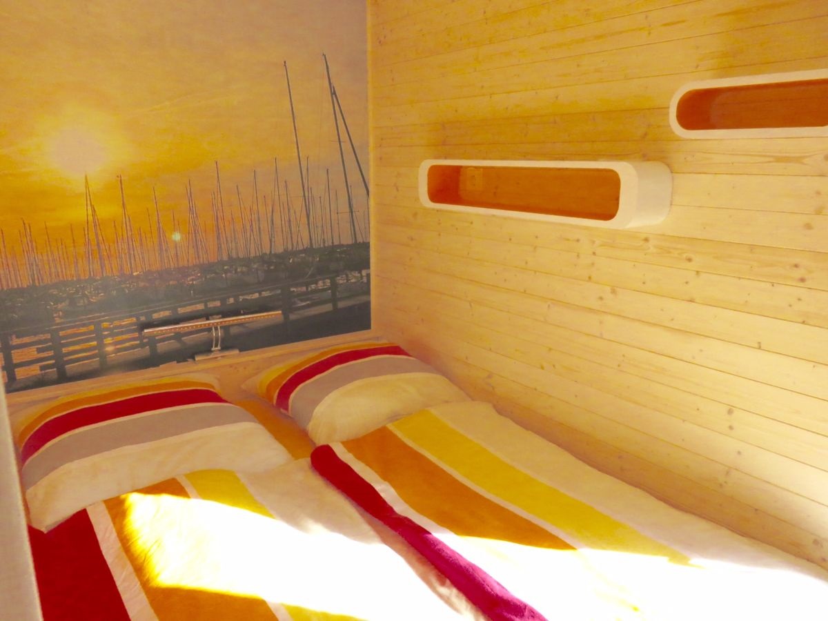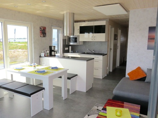 Das Hausboot hat 2 Schlafzimmer mit je einem Doppelbett(1,60 x 2,00), einen Wohnbereich mit einer Schlafcouch sowie einer Küche, einem separaten WC und einem Badezimmer mit Dusche.