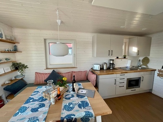 2 Schlafzimmer - 2 Doppelbetten (160x200 cm) - Kleiderschrank | Küche - Esstisch - Gasherd - Kühlschrank mit Gefrierfach - Kaffeemaschine - Mikrowelle - Toaster - Eierkocher - Wasserkocher | Badezimmer - Dusche (bodengleich) - Föhn - Kosmetikspiegel - Waschbecken |